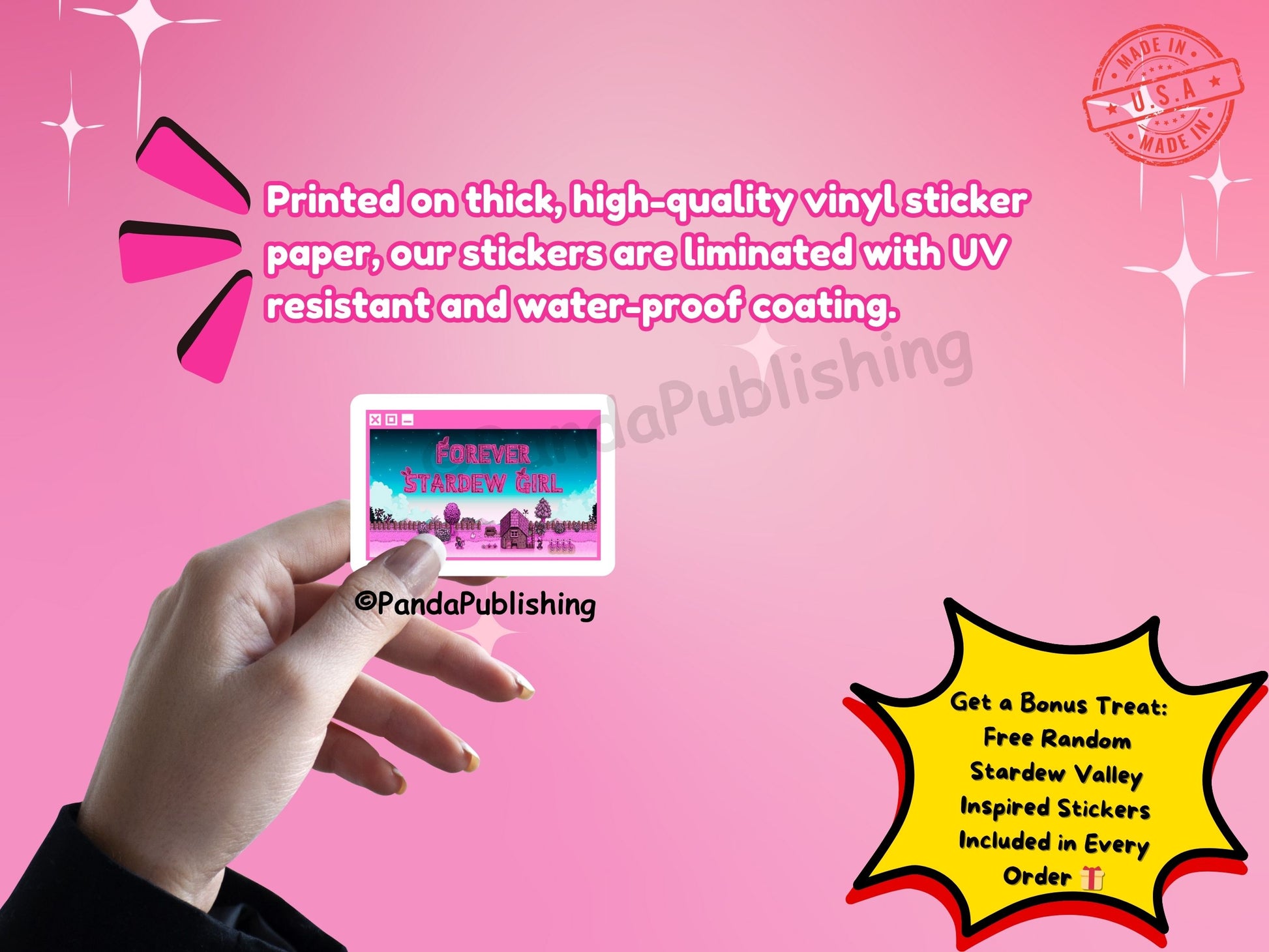 Eac h sticker is printed on high-quality vinyl sticker paper with a glossy finish, and laminated for durability. These stickers are tear-resistant, water-resistant and designed to withstand everyday wear.