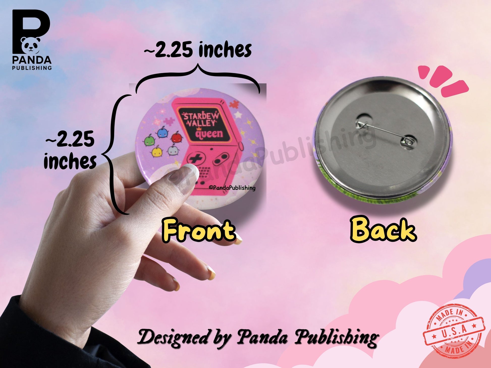 ⭐ 1 glossy button pin with Stardew Valley queen design